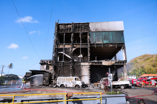 A fire that destroyed the Orange Park Commercial Centre, the building commonly known for housing Computer World, in Bois d’Orange, on Friday night, has been linked to several operational challenges faced by firefighters, including restricted building access and the presence of hazardous materials, according to the Saint Lucia Fire Service (SLFS).