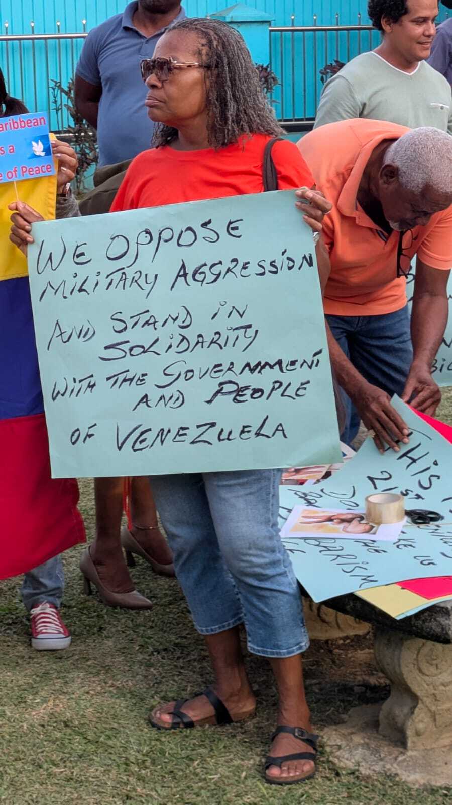 “I really appreciate the presence of my colleague, my good friend, the ambassador of Cuba in Saint Lucia, the head of the medical brigade, and many friends from Saint Lucia,” she said. “This is an expression of solidarity by the people and the solidarity movement in Saint Lucia, supporting Venezuela.